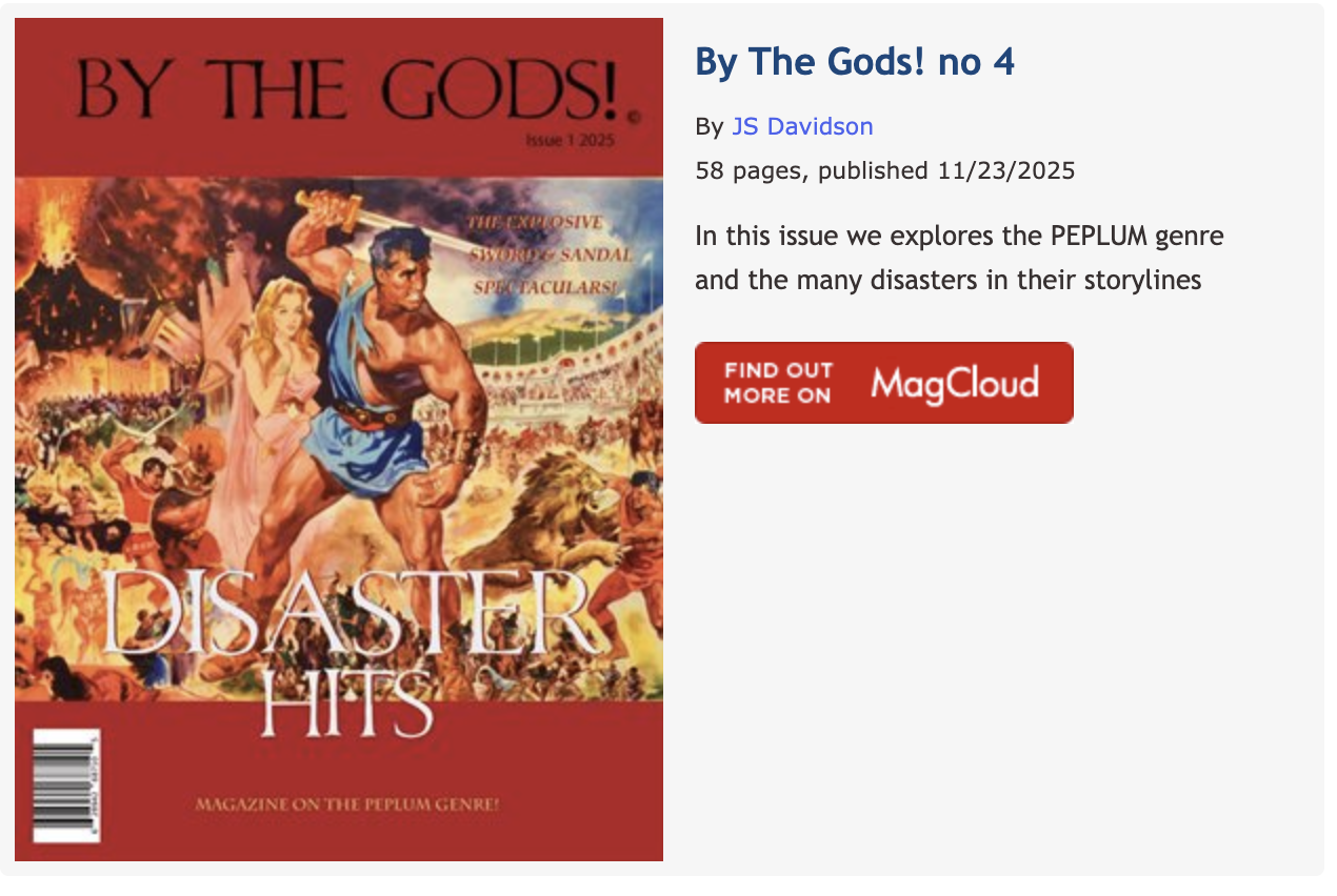 The fourth issue of BY THE GODS! is now on for sale with 30% off its regular price of $19.75. The special lasts until December 1.